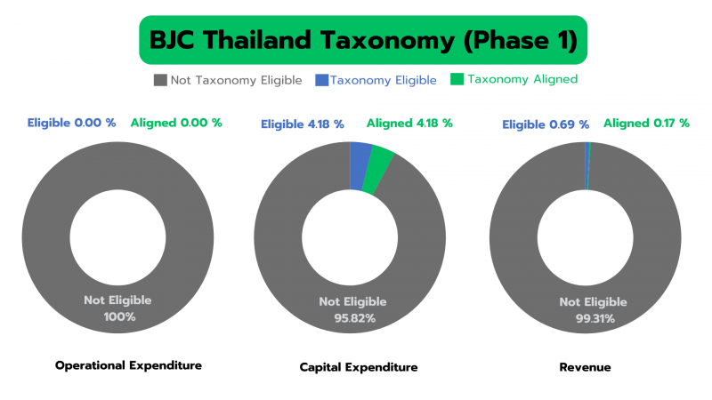 In 2024,Thailand taxonomy has recently been released and is currently applicable only to the Energy and Transport sectors; the sustainable framework is not yet legally required in Thailand. Since BJC operates in the food and staple retailing sector, this requirement is not directly applicable to the company. Nevertheless, BJC voluntarily discloses its taxonomy eligibility in accordance with Thailand Taxonomy Phase 1 to prepare for foreseeable future enforcement.