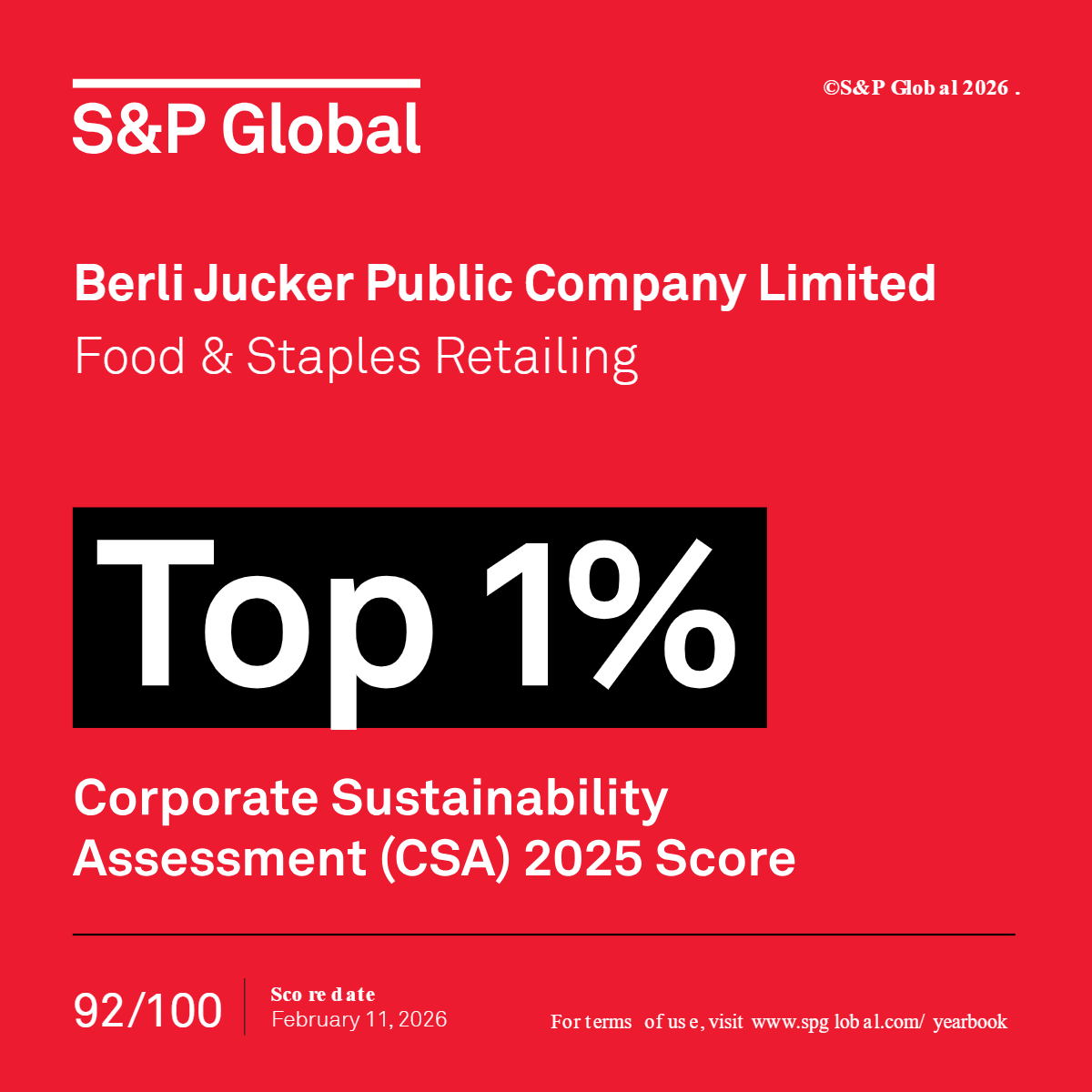BJC has been listed on the Dow Jones Sustainability Indices (DJSI), with the world’s highest score of 89 in Food & Staples Retailing industry of the 2022 S&P Global Corporate Sustainability Assessment.